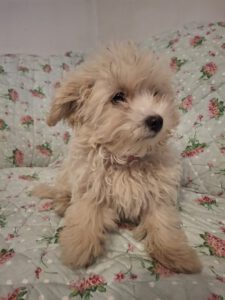 Fiona ist eine zarte, etwa vier Monate alte Hündin, die mit ihren 2,2 Kilogramm und ihren 19 cm Schulterhöhe ein echtes Leichtgewicht ist. Mit ihren 25 cm Länge passt sie problemlos auf jeden Schoß – und genau dort fühlt sie sich auch am wohlsten.