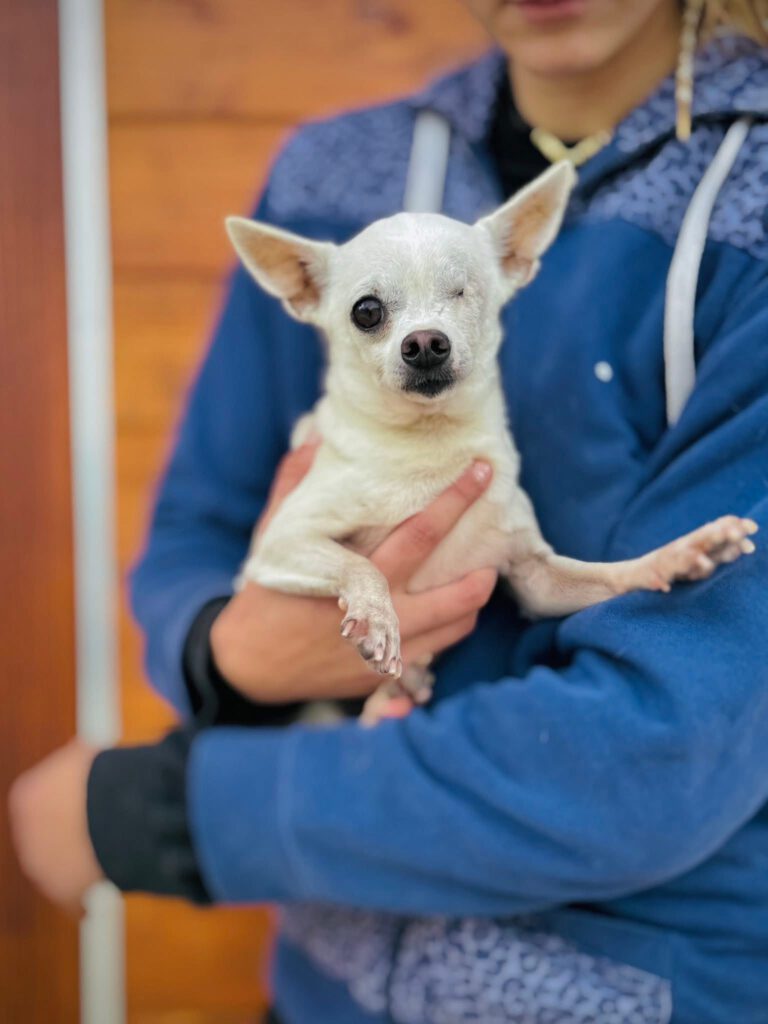 Sweetpie ist eine total freundliche Chihuahua-Mix-Dame, die es bislang nicht leicht hatte. Gefunden wurde sie auf der Straße.