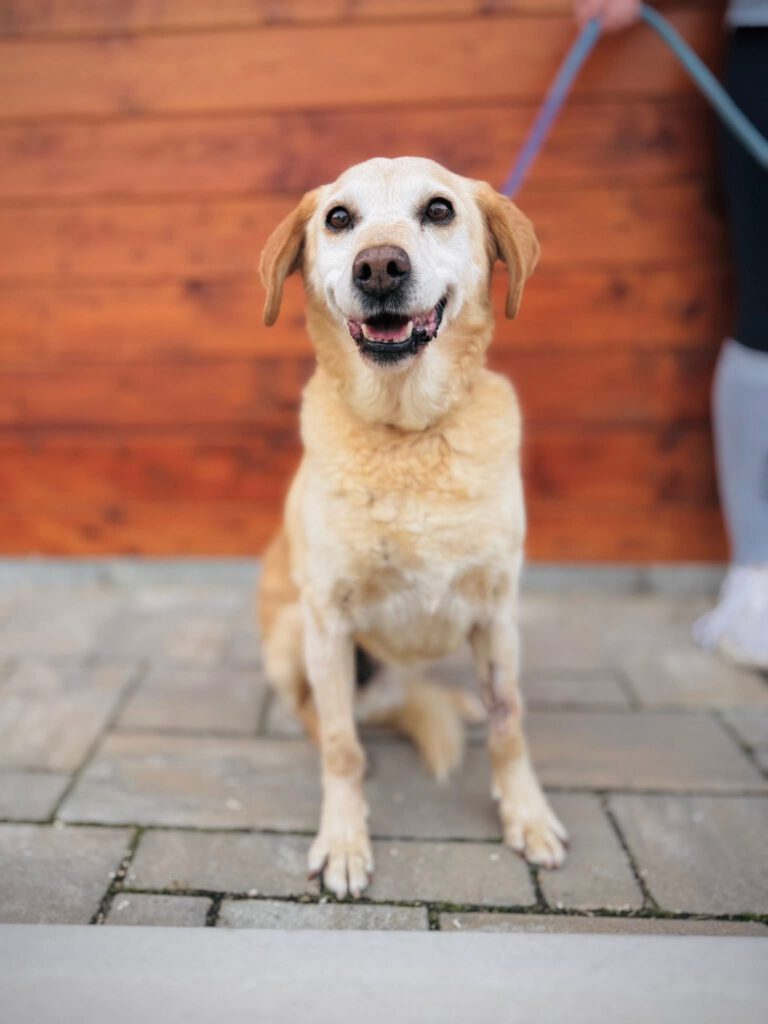 Trotz Aztecs Alters ist er erstaunlich aktiv und liebt Spaziergänge. Draußen blüht er richtig auf, erkundet neugierig die Welt und genießt jede Minute.
