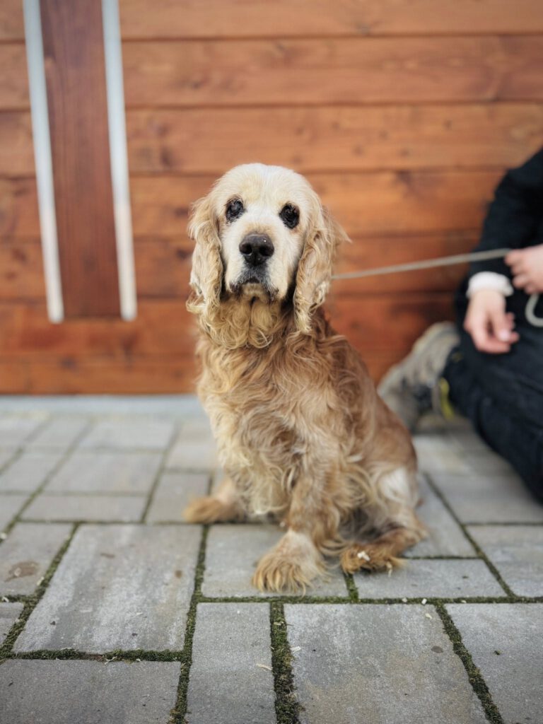 Encian ist ein etwa 12 Jahre alter, kleiner Cocker-Mix-Rüde, der aus sehr schlechten Haltungsbedingungen gerettet wurde.