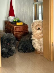 Caviar ist ein Puli-Mix-Rüde, der aus schwierigen Verhältnissen gerettet wurde. Er lebte mit zwei anderen Pulis völlig abgeschottet in den Ruinen eines alten Hauses – umgeben von Müll, voller Flöhe, ohne Schutz und ohne menschliche Nähe.
