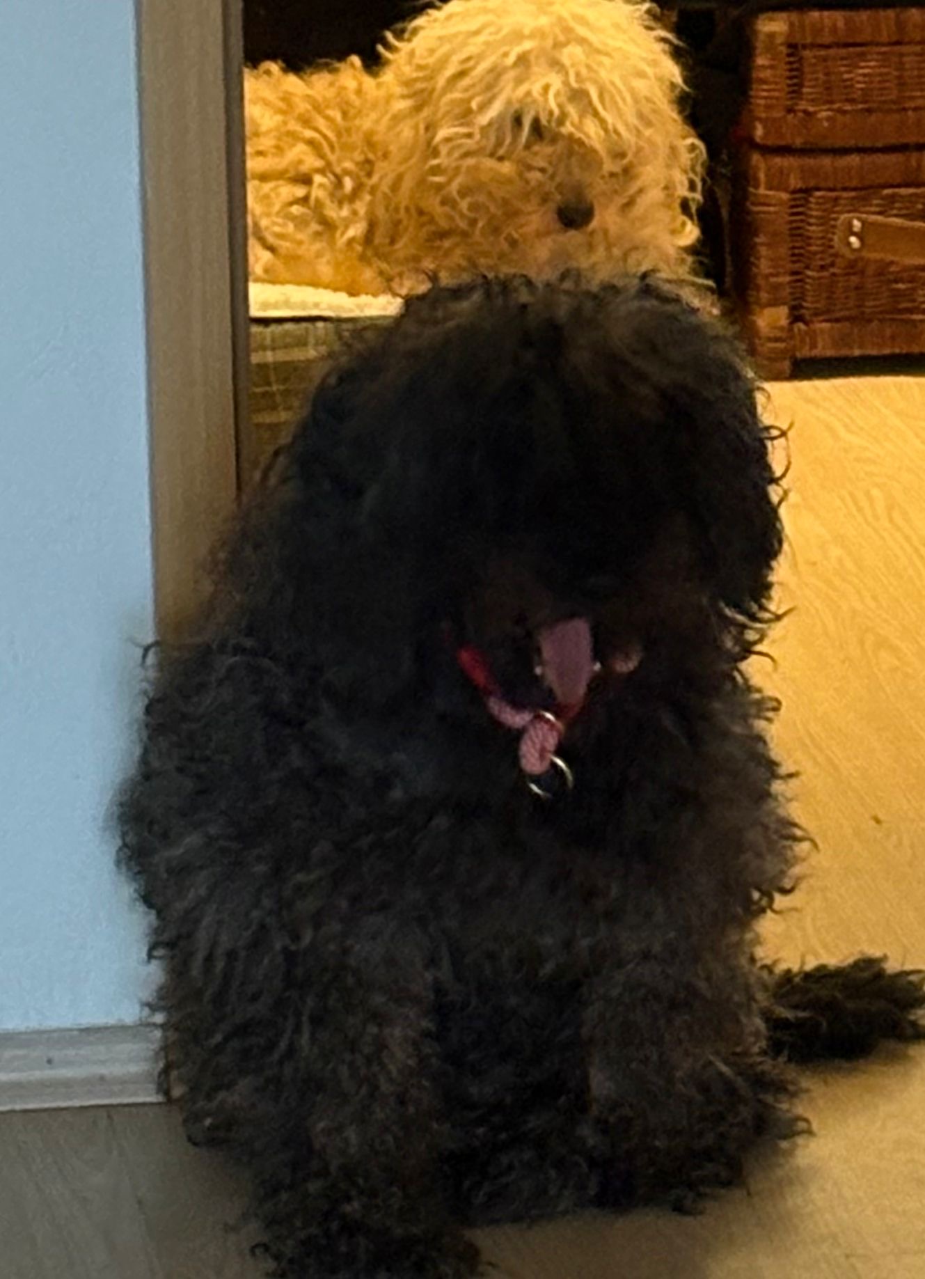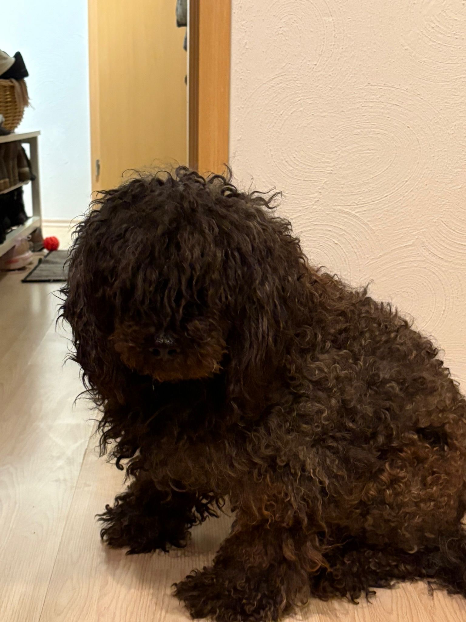Caviar ist ein Puli-Mix-Rüde, der aus schwierigen Verhältnissen gerettet wurde. Er lebte mit zwei anderen Pulis völlig abgeschottet in den Ruinen eines alten Hauses – umgeben von Müll, voller Flöhe, ohne Schutz und ohne menschliche Nähe.