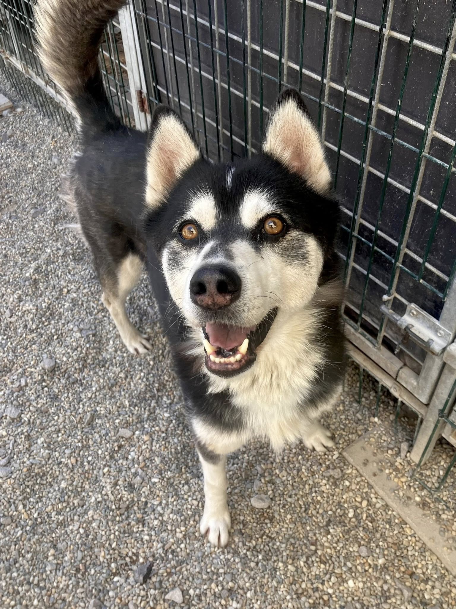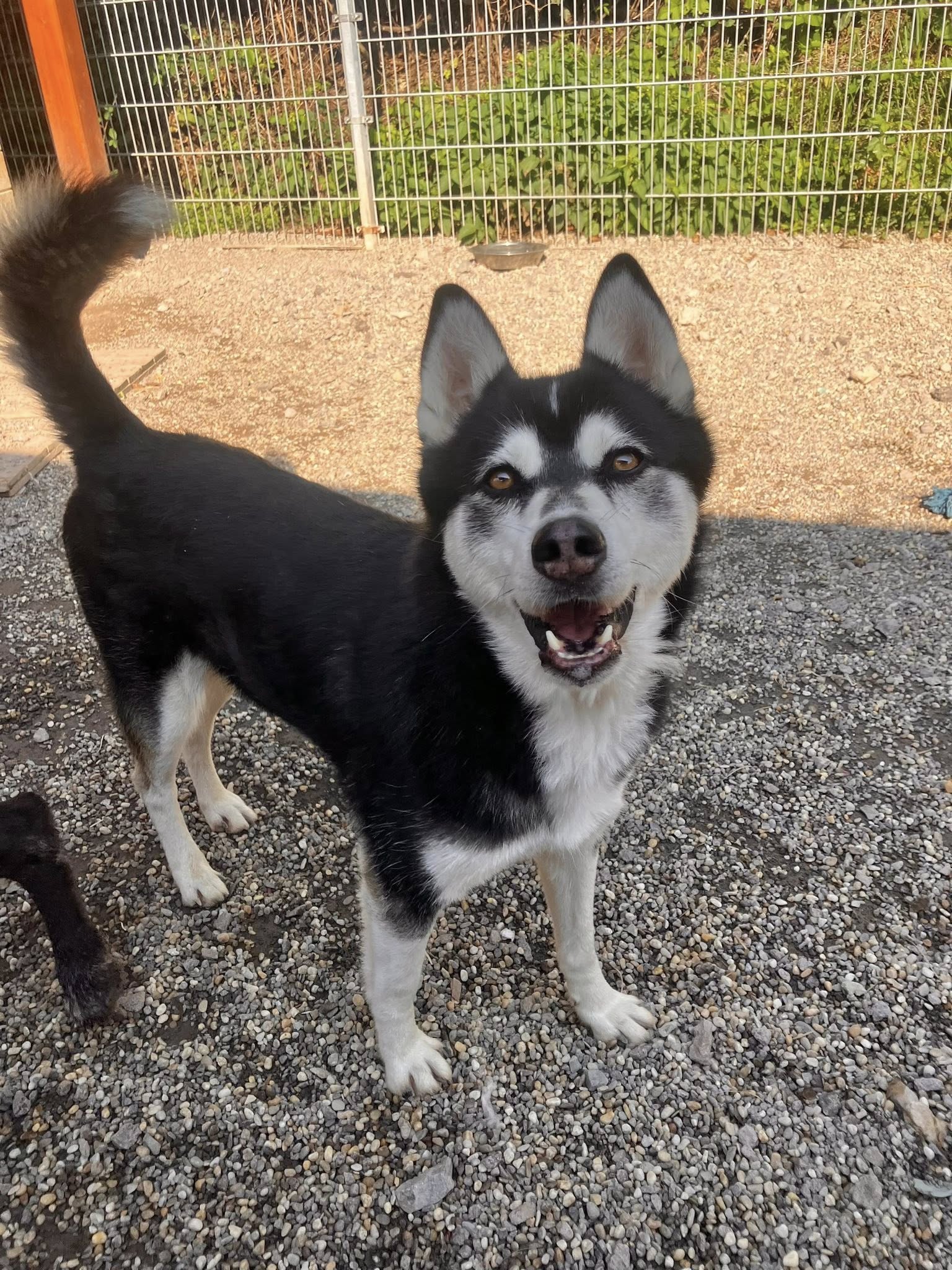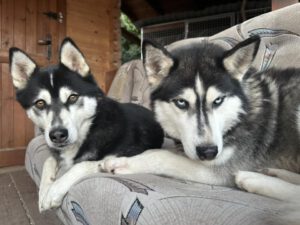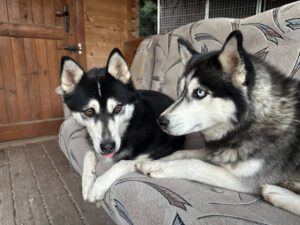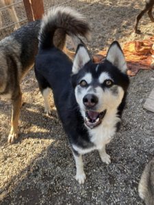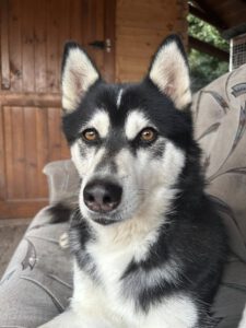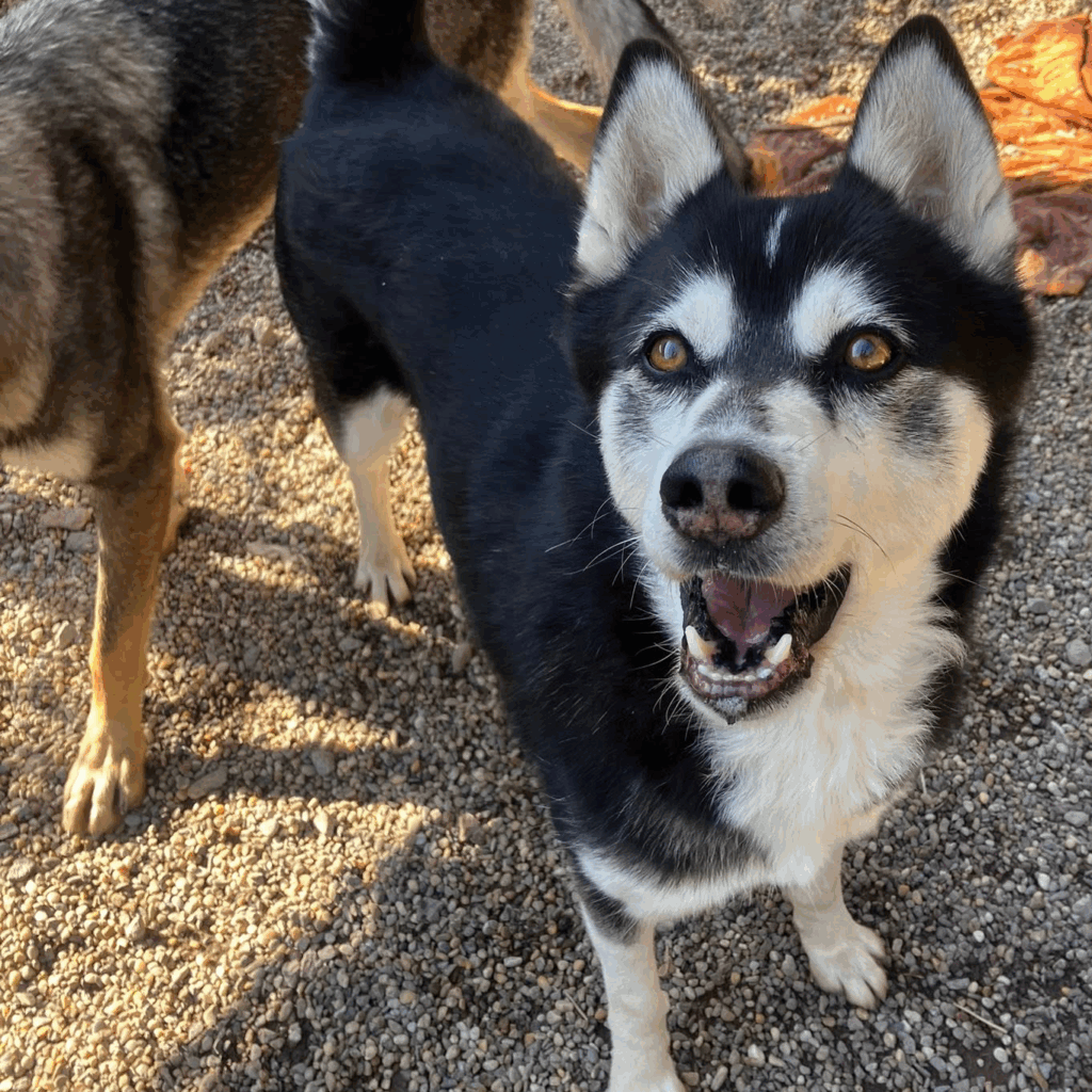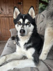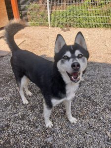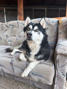 Husky-typisch ist er sehr kommunikativ und „spricht“ viel mit Menschen, eine hellhörige Wohnung wäre also nicht so günstig als neues Zuhause. Mit anderen Hunden kommt er gut zurecht, wobei er mit manchen Rüden auch mal Streit sucht. Ein Ersthund darf also gerne vorhanden sein, allerdings sollte das eine Hündin sein.