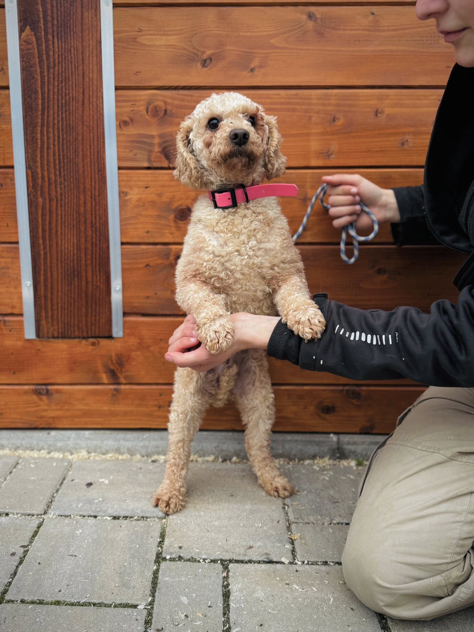Sie muss das ganze Leben erst entdecken – vom Vertrauen in Menschen bis hin zu den kleinen Alltagsmomenten, die für andere Hunde selbstverständlich sind. Ein souveräner, freundlicher Ersthund wäre für sie eine große Unterstützung, um Sicherheit zu gewinnen und langsam Selbstvertrauen aufzubauen, ist aber kein Muss.