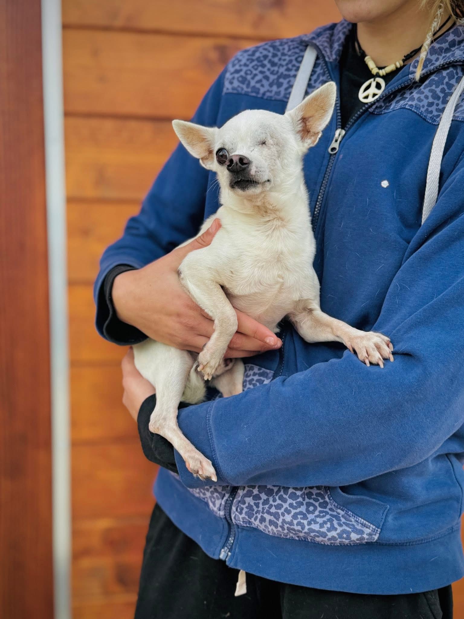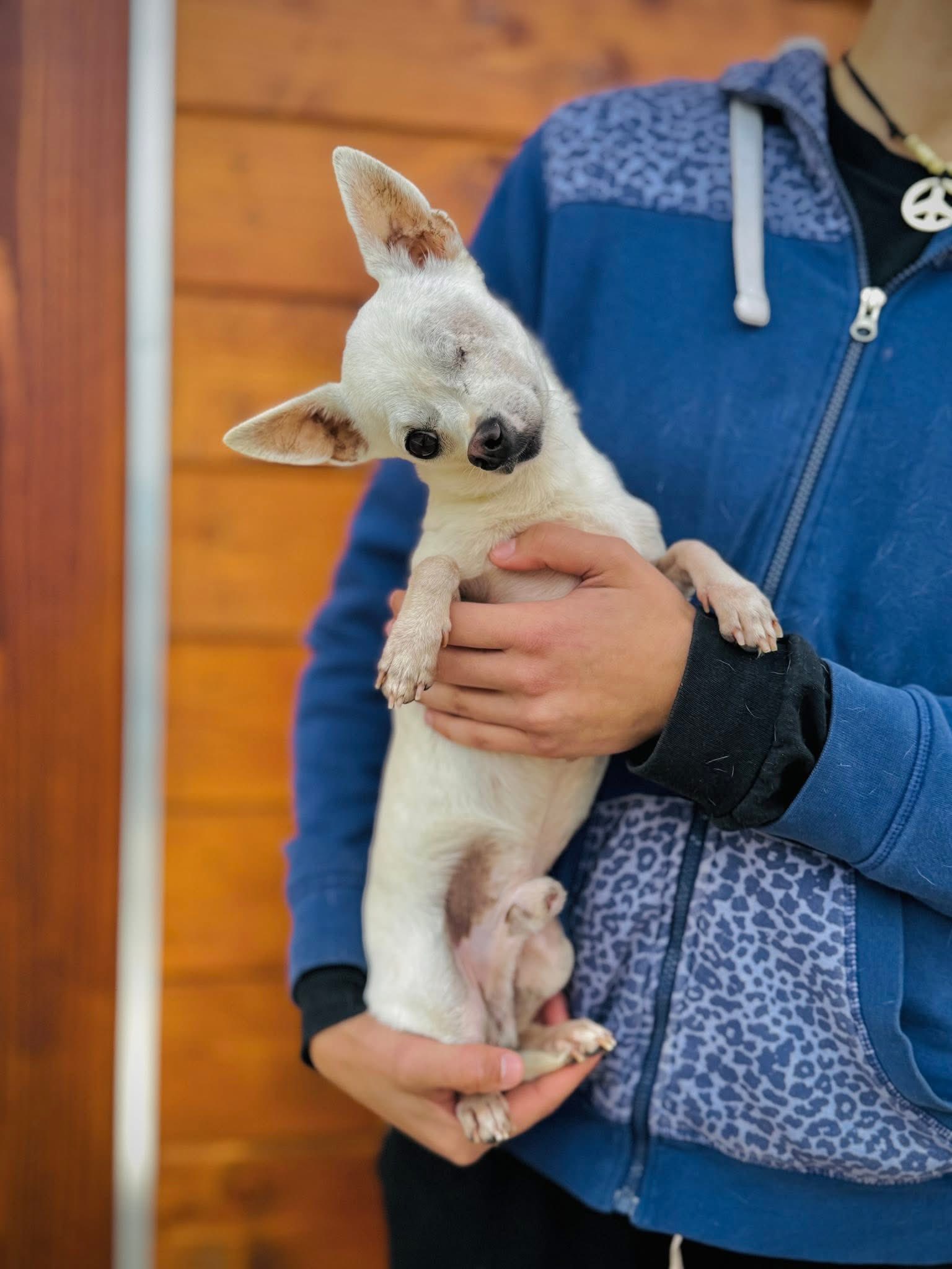 Der kleine Rüde ist etwa 3 Jahre alt und wiegt 3,5 kg. Aufgrund eines vergrößerten Herzens benötigt er dauerhaft das Medikament Cardisure. Eins seiner Augen fehlt ihm leider, was ihn aber nicht weiter beeinträchtigt. Wie viele Tiere aus solchen Fällen ist er von Inzucht betroffen, was weitere gesundheitliche Einschränkungen mit sich bringen kann. Krankheiten blieben lange unerkannt und unbehandelt, doch Eclair wurde inzwischen tierärztlich versorgt.