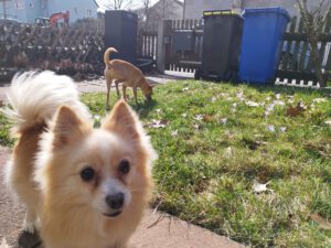 Mit anderen Hunden versteht sich Fairy sehr gut. Ein vorhandener Ersthund wäre von Vorteil, da sie sich aktuell noch unter Hunden wohler fühlt, als in der Nähe von Menschen.