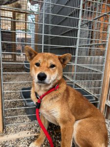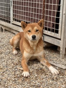 Dort zeigt er sich als lieber, aber schüchterner Rüde, der sich aber nach einer Weile daran gewöhnt, in der Nähe von Menschen zu sein und dann damit ganz gut klar kommt. Er lässt sich anfassen und hochheben. Mit Rüden kommt er nicht ganz so gut zurecht, daher wird er nur als Einzelprinz oder (besser) zu einer Hündin vermittelt, aber keinesfalls zu Rüden. Bestenfalls ist das eine Shiba-Dame, die seine Kommunikation versteht.