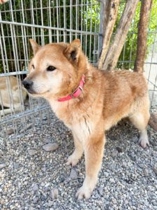 Dort zeigt sie sich als eine sehr niedliche, etwa vier Jahre junge Hündin, bei der es sich vermutlich um die Mutter der drei schüchternen Brüder Shouta, Botan und Yokai handelt. Aktuell ist sie noch sehr schüchtern und zurückhaltend, zeigt aber bereits erste wichtige Fortschritte: Sie lässt sich schon auf den Arm nehmen und beginnt, neugierig ihre nähere Umgebung zu erkunden. Aufgrund dieser wachsenden Neugier ist davon auszugehen, dass sie in einem stabilen häuslichen Umfeld eine schnelle Lernerin sein wird.