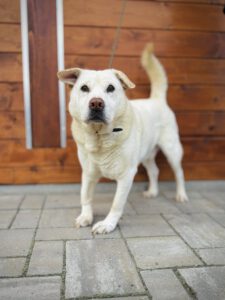 Aufgrund seines Alters (er könnte auch schon über 10 Jahre alt sein, das ist leider nicht sicher) sind seine Zähne schon sehr abgenutzt. Bei seiner Ankunft hatte er eine schwere Ohrenentzündung, Hüftdysplasie, Ehrlichiose und Arthrose. Alles wurde inzwischen erfolgreich behandelt bzw. operiert, nur für letzteres wird er ein Leben lang Medikamente benötigen.
