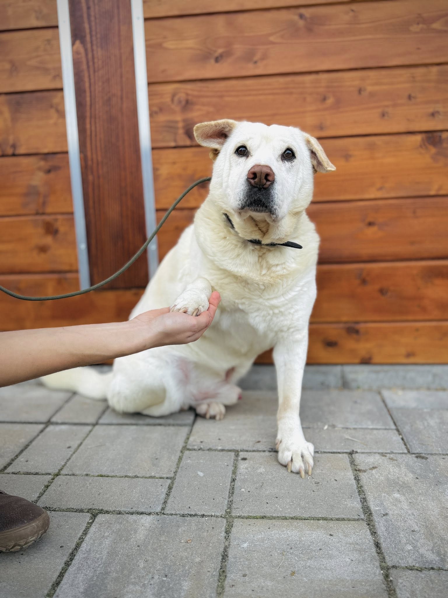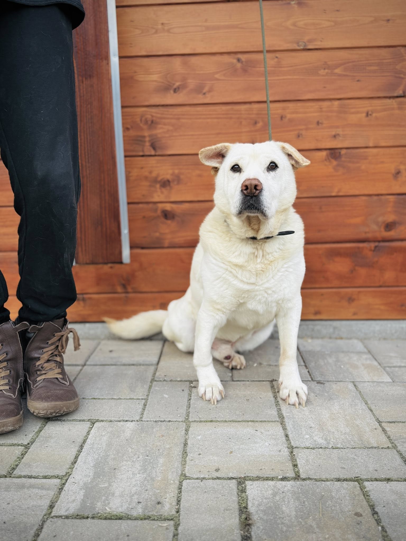 Dort ist er von allen der kuscheligste und am meisten verschmuste Hund, am liebsten würde er stundenlang nur kraulen lassen. Er liebt alle Besucher, sagt jedem hallo und holt sich zuverlässig seine Streicheleinheiten ab. Er ist sehr sozial, versteht sich prima mit allen Hunden, er kannte Hunderte im Tierheim. Sie kommen und gehen, und jedes Mal, wenn andere Hunde wegfahren, schaut er traurig zum Auto, weil er selbst noch nicht derjenige ist, der gehen darf. 🥺 Anfangs hatte er ein paar Probleme mit anderen Rüden, aber das zeigt sich inzwischen so gut wie gar nicht mehr. Er ist wirklich ein einfacher Hund – ein warmes Bett und etwas Liebe, und er ist der glücklichste Hund.