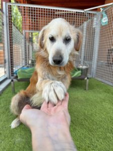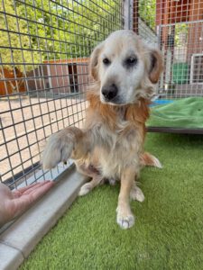 Natürlich bringt sein Alter auch einige Baustellen mit sich: Quilombo leidet an einer schweren Malassezia-Dermatitis, die eine längere Behandlung erfordert. Beide Augen sind trocken und brauchen regelmäßig Tropfen, eines davon ist zudem eingetrübt und nach innen gesunken. Dazu kommt eine Ellbogendysplasie. Sein Darm musste nach jahrelanger falscher Ernährung erst einmal versorgt werden. Doch trotz all dieser Einschränkungen hat Quilombo nie seine liebevolle Art verloren.