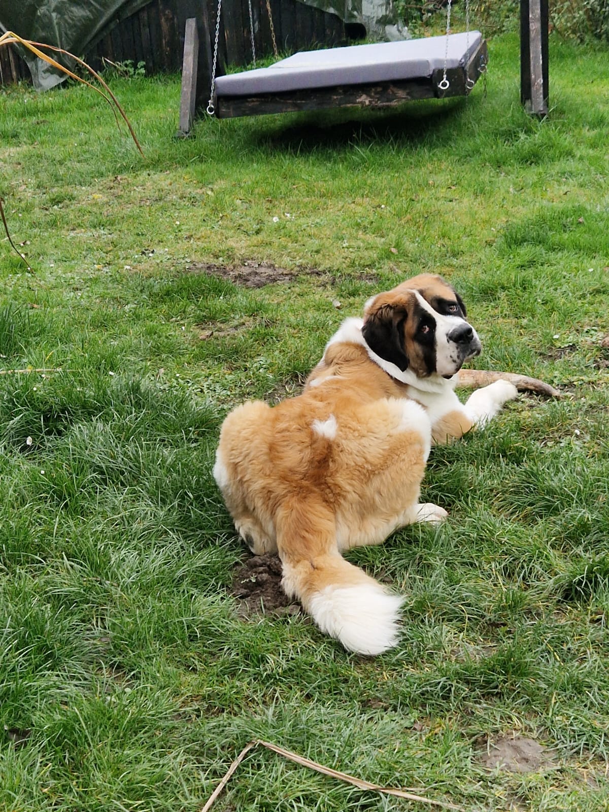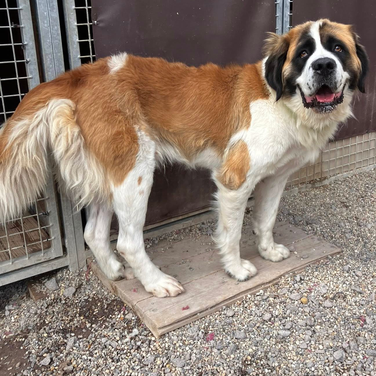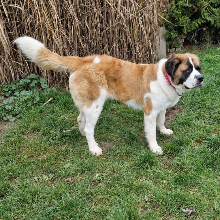 Abgegeben wurde sie laut der Familie wegen Agressionen, allerdings zeigte sie davon im Tierheim nicht die geringste Spur. Sie hat nicht einmal geknurrt oder schlimmeres. Stattdessen war sie sehr freundlich, mochte die Menschen sehr und war auch beim Tierarzt und beim Impfen sehr lieb. Mit anderen Hunden kam sie hier ebenfalls bestens zurecht. Möglichweise steckt in ihr auch ein bisschen Moskauer Wachhund, allerdings zeigt sich bisher nur der Charakter vom Bernhardiner.