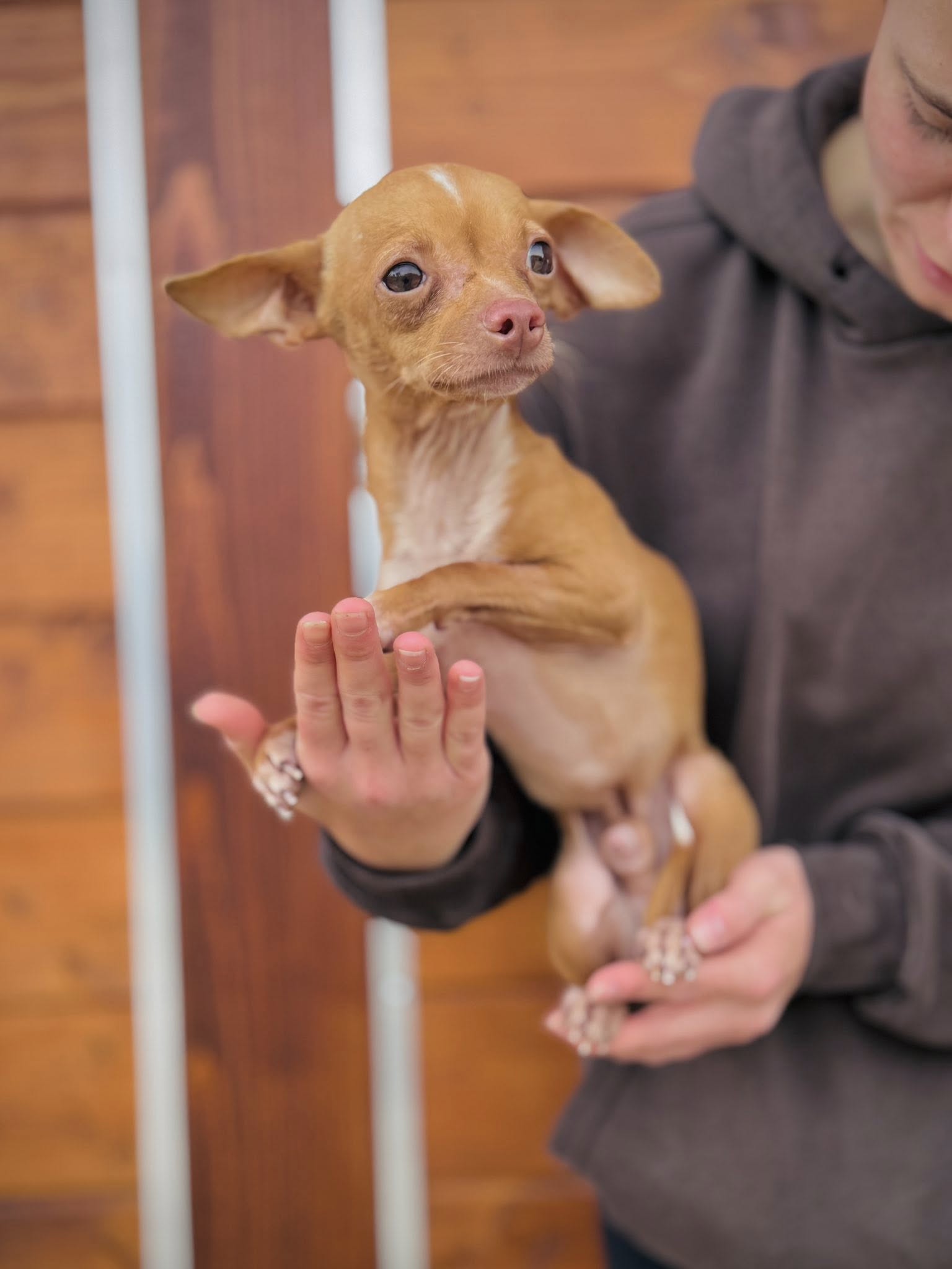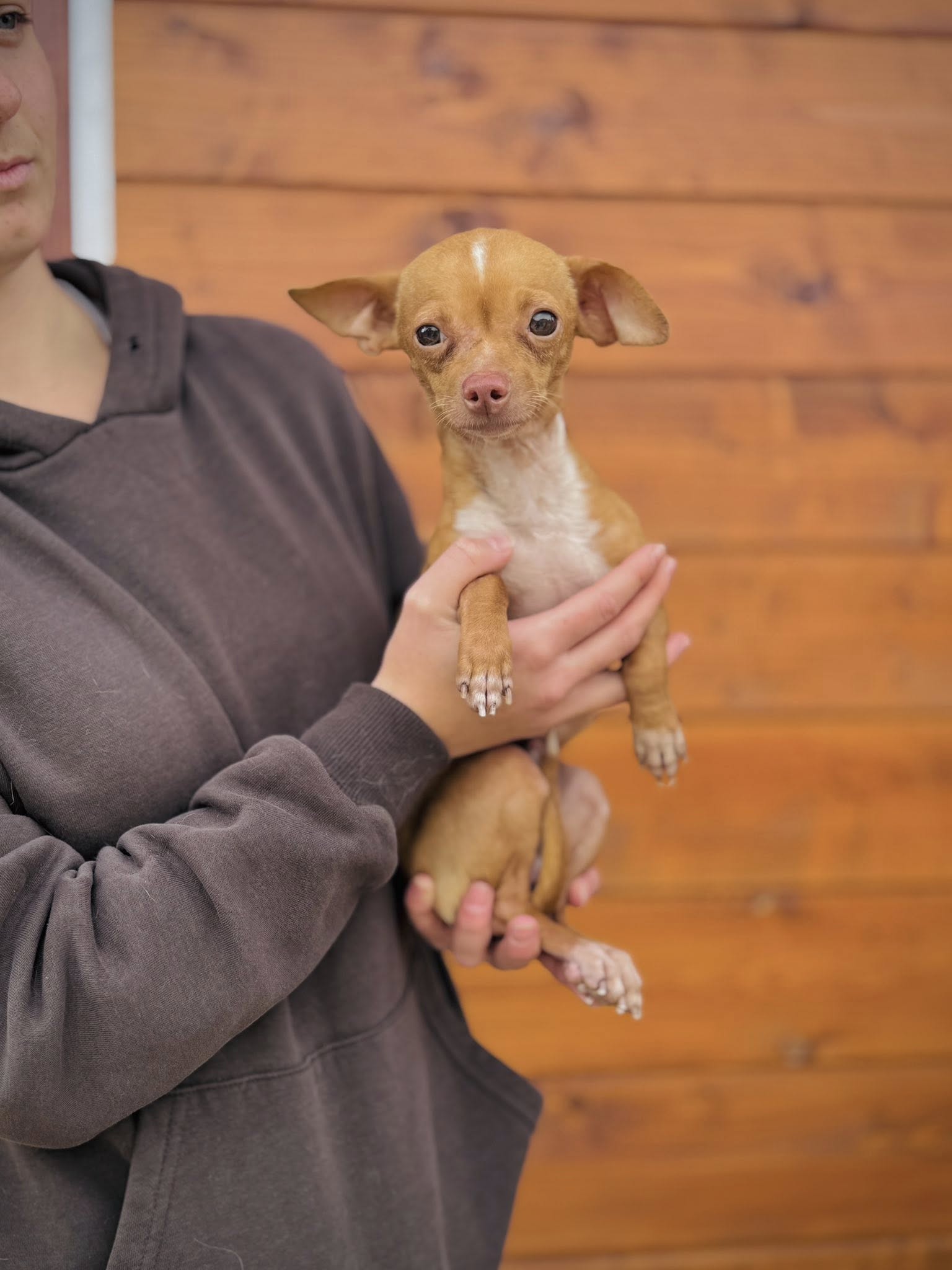 Waffles stammt aus dem großen Animal Hoarding-Fall (siehe https://herzenshunde-hessen.de/hund/chihuahua-mixe/)