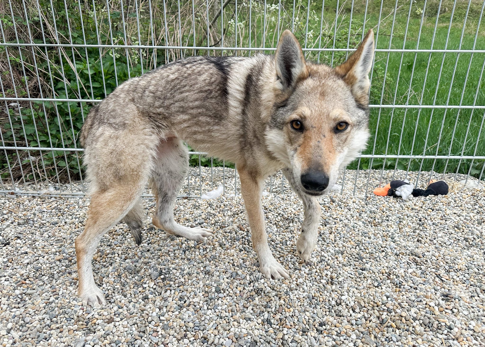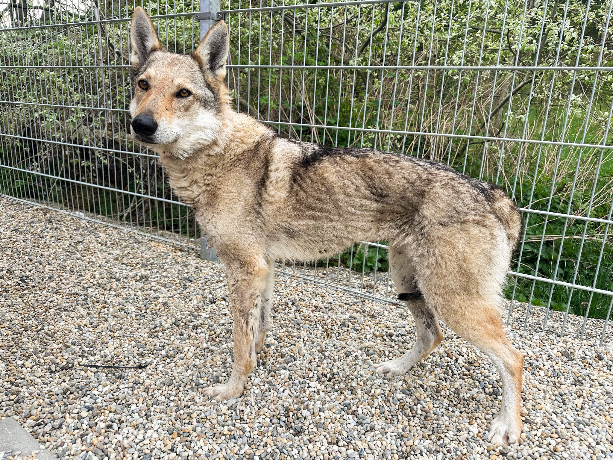 Dort zeigt sie sich als eine etwa fünf Jahre alte Tschechoslowakische Wolfhündin, die zum Zeitpunkt ihrer Rettung extrem abgemagert, massiv gestresst und sichtlich misshandelt war. Nach den schweren Erfahrungen in ihrem bisherigen Leben lernt sie nun ganz langsam, wieder ein normaler Hund zu sein. Dieser Prozess erfordert viel Zeit und große Geduld. Erste kleine Fortschritte sind bereits sichtbar: Sie beginnt allmählich, Vertrauen zu ihren Bezugspersonen zu fassen und tastet sich auch vorsichtig daran heran, anderen Hunden wieder zu vertrauen. Ylva befindet sich derzeit im Prozess, alle Grundlagen des Hundeeinmaleins von Grund auf neu zu erlernen.