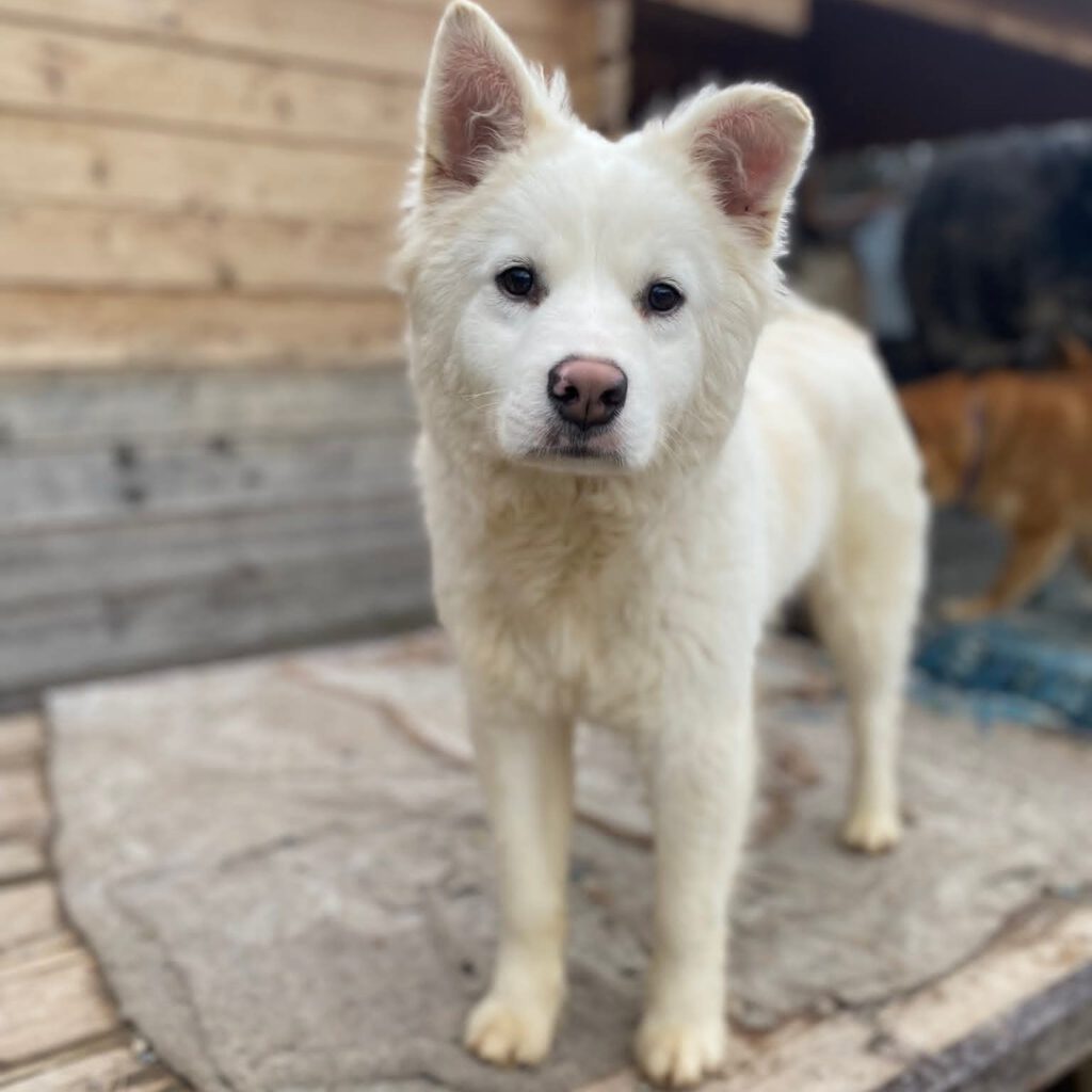Dort zeigt er sich als extra sozialer, freundlicher und aktiver Junghund. Mit seinen etwa fünf bis sechs Monaten ist er ein echtes Herzblatt, das sowohl mit Kindern als auch mit anderen Hunden bestens zurechtkommt. Da er sich noch im Wachstum befindet, erwarten wir, dass er einmal ein mittleres Format mit einem Gewicht von etwa 15 kg erreichen wird. Yukihiko ist ein Mischling, bei dem man die nordischen Gene deutlich sieht. Wir sind uns unsicher, welche Rassen genau in ihm stecken, aber optisch und charakterlich liegt die Vermutung nahe, dass ein Husky beteiligt war. Es könnten jedoch ebenso Anteile eines Akita oder eines Jakutischen Laika in ihm schlummern.